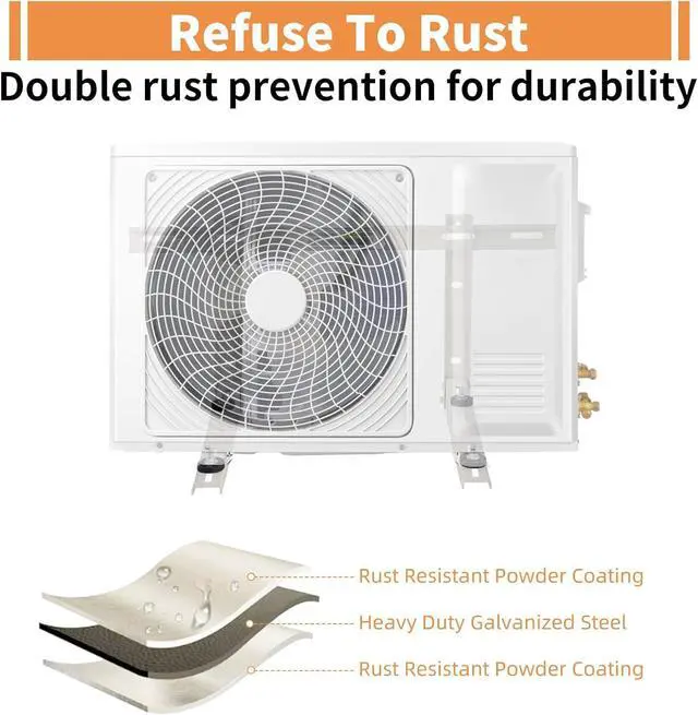 Universal Bracket: The mini split wall mounting bracket is constructed with high quality galvanized steel and epoxy painted. Heavy duty design with L-bracket and horizontal arms beam to support to 270 lbsUniversal mini split