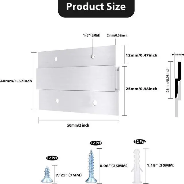 You Get: 6 pairs french cleat picture hanger X 12 pieces self-tapping screws X 12 pieces self drilling screw X 12 pieces expansion rubber plugs