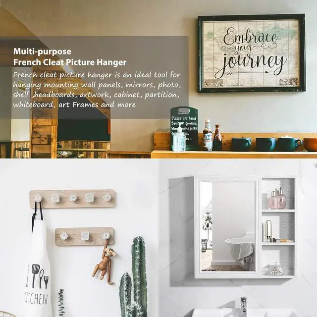 Multi-purpose French Cleat Picture Hanger: French cleat picture hanger is an ideal tool for hanging mounting wall panels mirrors photo shelf headboards artwork cabinet partition whiteboard art Frames and moreEasy to
