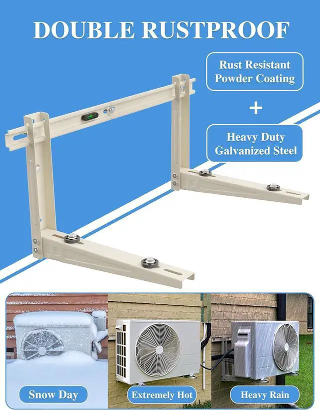 Mini Split Wall Bracket: Made from high-quality heavy duty galvanized steel which can keep your AC rust-proof WEETALL bracket is built to withstand the weight of mini split units ensuring long-lasting performanceAdditional advantagesFeeling-4 rubber pads are added to minimize the transmission of vibration from the unit to the 12000 btu wall brackets and make your AC super quiet while running2