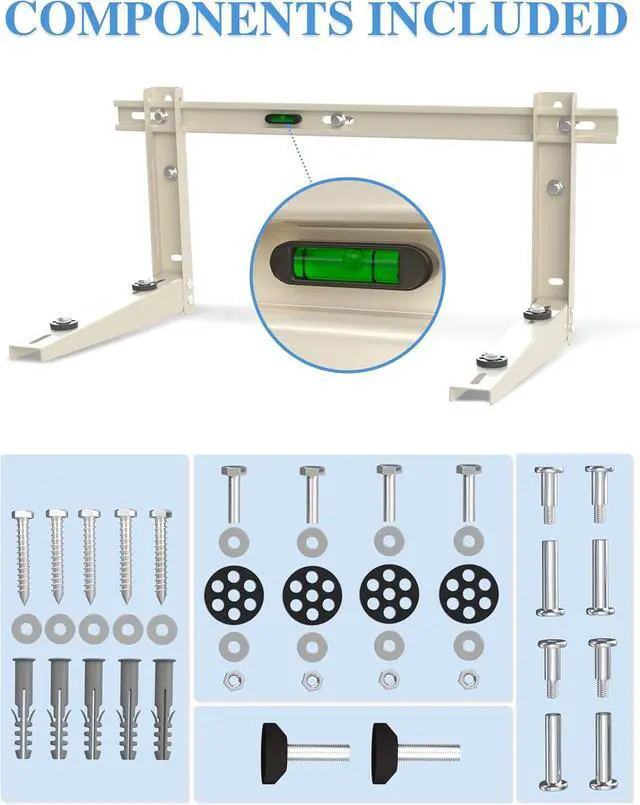 Hardware Included: Designed for easy installation this split mounting bracket comes with all necessary hardware and clear instructions allowing you to set up your mini split system quickly and hassle-freeHorizontal adjustment function: Exclusive built-in spirit level helps you correct mounting slope position. Angle regulators mounted on the vertical arms help you adjust the distance between the bracket and the wallHigh-quality