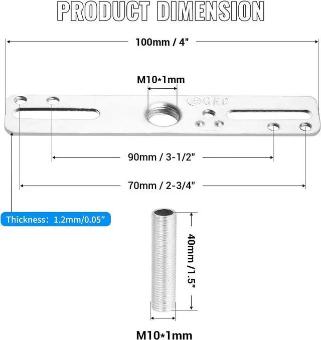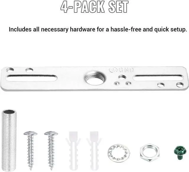 Package Includes: Each package comes with 4 pieces of 4'' zinc-plated steel crossbar mounting brackets 4pcs 3/8'' (1/8IP) lamp pipe (40mm length) 4pcs ground screws and 4pcs lock nut allowing for flexible use in various projects. For 1/8IP lighting fixture whether you are upgrading existing fixtures or installing new ones this versatile set provides the adaptability needed for different lighting setups.