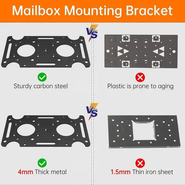 KOMOHOM mailbox mounting plate is made of high-quality cold-rolled steel with a thickness of 4mm. It is 266% of the thickness of the others 1.5 mm thick bracketIt can not only serve as a carrier for connecting the mailbox to the column but also play a role in reinforcing the mailbox.??