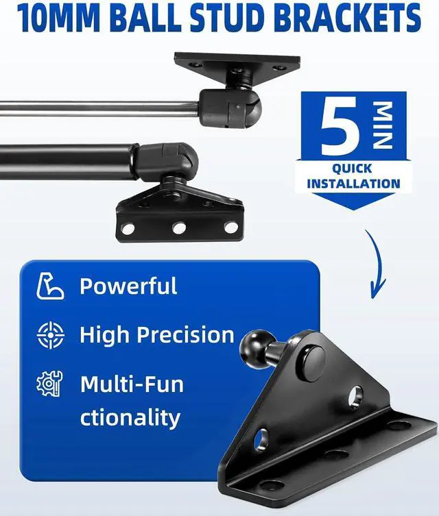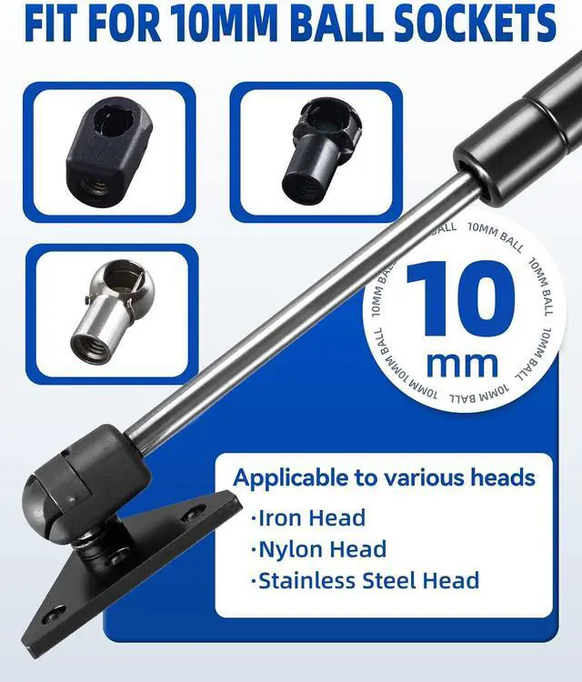 Size Big Power: Our 10mm ball stud brackets are made of steel and galvanized for superior performance. Sturdy and durable. It can be used with gas springs up to?????????? 10???? Gas Struts