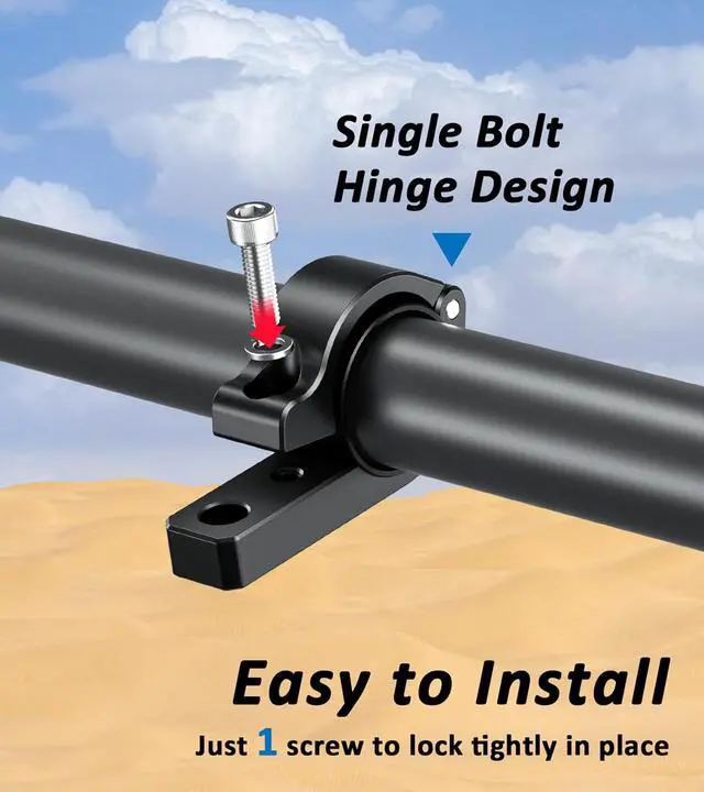 Single Bolt Hinge Design: Installation is a breeze with 1 screw to hold it in place. The light bar mount can be securely fastened to the roll cage on any terrain. Includes two allen wrenches for you to install and removeHeavy-Duty