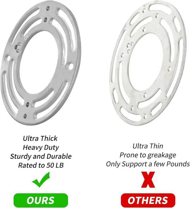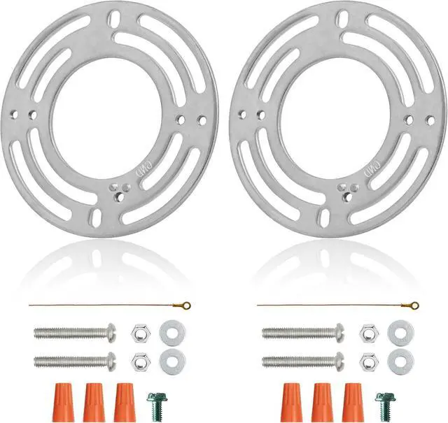 MetalHeavy duty mounting bracket: Standard 4 diameter x 1/8 thick light fixture mounting bracket made of high-quality galvanized steel ensuring sturdy performance durability and rust resistance. The heavy-duty bracket is rated to support up to 50 poundsIncludes everything needed for installation: Complete light fixture Universal mounting bracket kit includes crossbar bracket installation screws washers nuts grounding screws grounding wire and wire connectorsEasy installation: This universal round mounting bracket is designed with standard hole positions and multiple universal slots making installation effortless perfect for both DIY enthusiasts and professionals ensuring a hassle-free setup every timeUpgrade or replace outdated fixtures: This round universal light crossbar Securely connects light fixtures and canopies to electrical junction boxes. Perfect for retrofitting or replacing vintage or DIY fixtures with existing hardwareUsage scenarios: Compatible with most recessed and surface-mounted 'pan-style' electrical junction boxes ideal for wall sconces ceiling lights chandeliers pendant lights flush-mounted lights barn lights and bathroom vanity fixtures