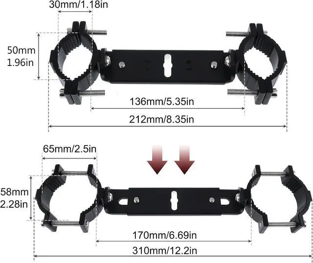 Wide compatibility: This Motorcycle spotlight bracket supports adjusting the length and angle you want suitable for most motorcycles.
