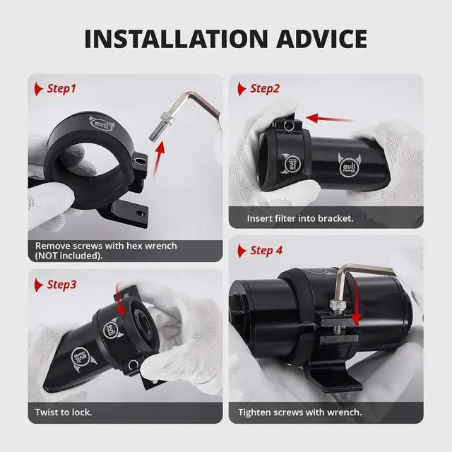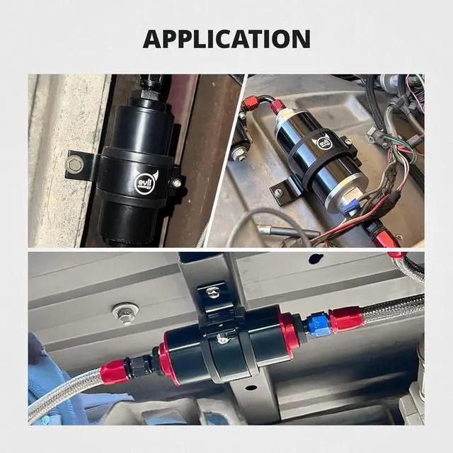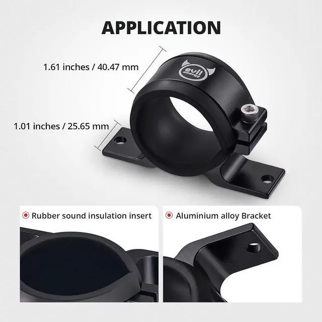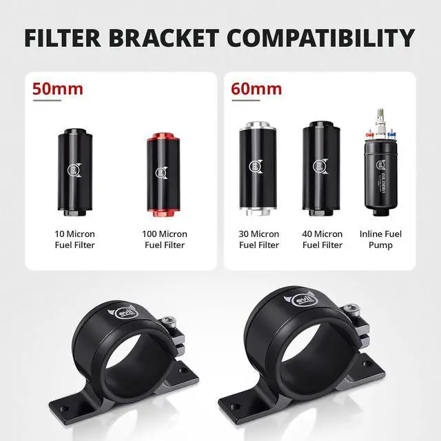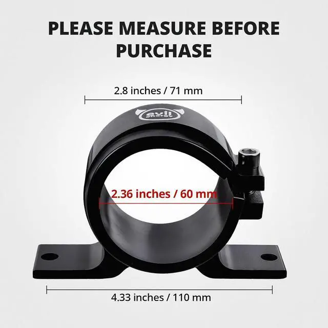 ID: 60mm (with the insert) or 65mm (w/o the insert). [Application] Universal suitable for fuel pumps fuel filters and other parts with a diameter of about 58mm-65mm. Please measure before purchase. [Material] Aluminium alloy Fuel Filter Clamp and rubber sound insulation insert. [Function] Keeps the engine bar stylish and clean. Rubber insert reduces vibration and assists in noise suppression. [Tips] Please check if the size matches before purchase.