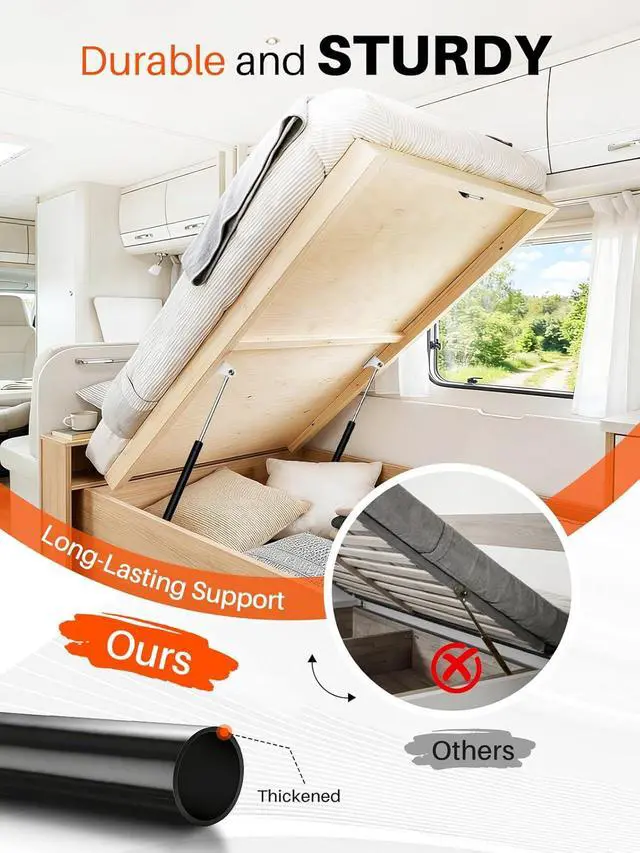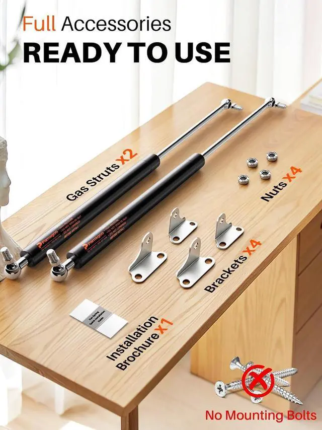 Extended Length: 23.03 Inches Compressed Length 13.54 Inches Each Strut Provides 55 Ibs Of Force (245N) Sold In 2 Pack. Dont Compress Manually Before Installation[GAS STRUTS DIVERSE APPLICATIONS] Deal As Gas Shocks Lift Lid Solutions For Diverse Settings: Rv Bed Storage Kitchen Cabinets Small Lid Storage Boxes DIY Toy Tool Bins And Truck Bed Covers. Provides Easy Access To Stored Items Without Heavy Lifting. Suitable For Residential (Cabinet/Bathroom) And Light Commercial Use[GAS STRUTS HIGH-QUALITY] Pamagoo Gas Spring Products Are Made With High-Quality Steel And High-Density Seals Offering Excellent Durability And Leak-Proof Performance. They Can Prevent Scratches And Extend Service Life. Each Pamagoo Gas Spring Ensures Stable And Consistent Performance Across Extreme Temperatures (-14°F To 113°F)[GAS STRUTS EASY INSTALLATION] No Special Tools Required For Installation! Each Set Includes Gas Strut X 2; Nut X 4; Mounting Bracket X 4; Installation Guide X 1. The Ball Socket Ends Provide 360° Rotation For Perfect Alignment. You Can Enjoy The Convenience Of Easy Lid Opening And Closing Within A Few Minutes[GAS STRUTS QUALITY ASSURANC] We Offer 18 Months Quality Support And 24-Hour Online Service For Every Pamagoo Gas Strut Set. Before Buying Please Confirm Your Old Gas StrutS Parameters Or Lid Weight