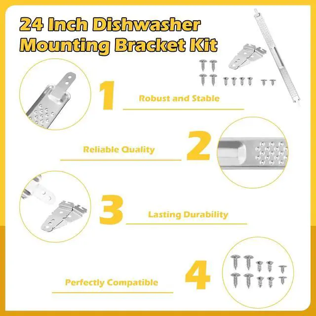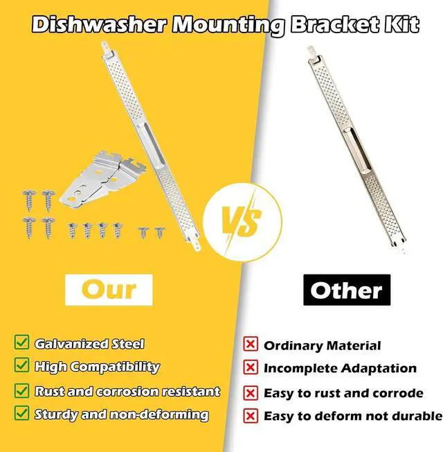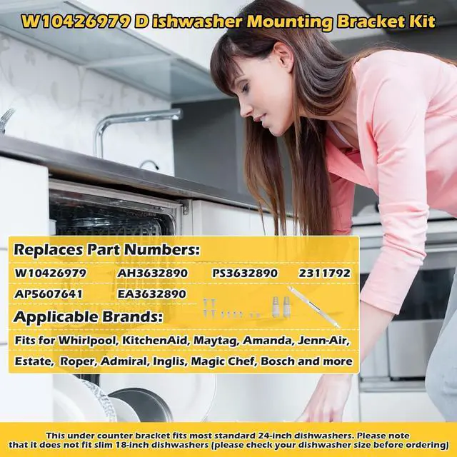 Package Include: This package includes 1PC W10426979 (AP5607641) Dishwasher Mounting Bracket Kit and 1 set of 8269145 mounting hardware screws (detailed information shown in Figure 1) This under-counter bracket is compatible with Whirlpool and most standard 24-inch dishwashersPart