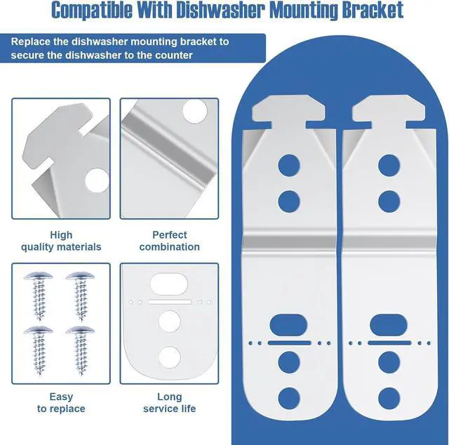 GREAT VALUE KIT: You'll receive 2 dishwasher mounting brackets and 4 screws that are designed and manufactured to meet exacting specifications so you can trust it to keep your dishwasher safe for continued use.