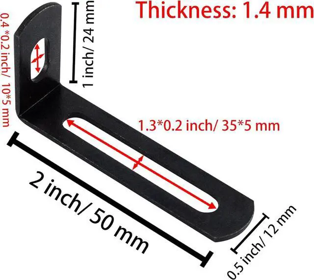 Package Including: You will receive 10pcs Black Adjustable Right Angle Brackets and all screws needed to install size: 50x24x12mm/2x1x 0.5 inch.