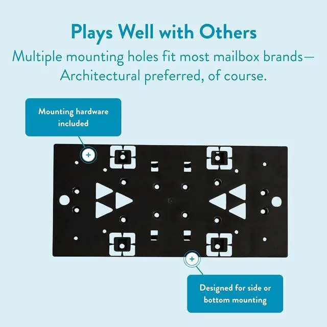 Plays Well with Others: Multiple mounting holes fit most mailbox brands Architectural preferred of course.