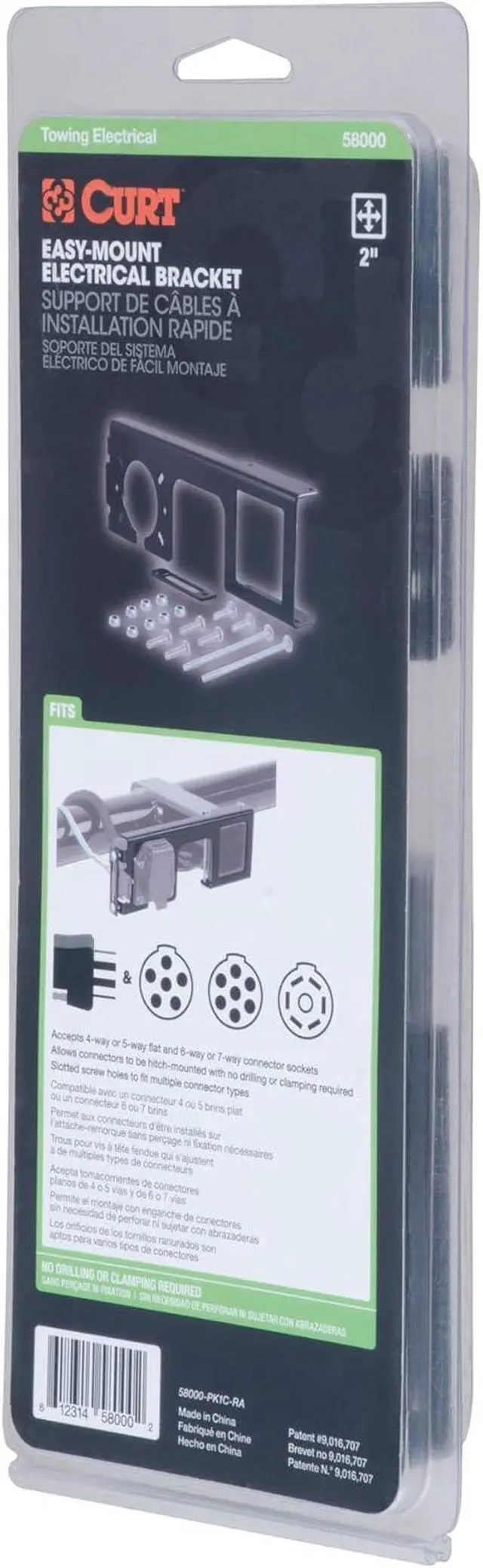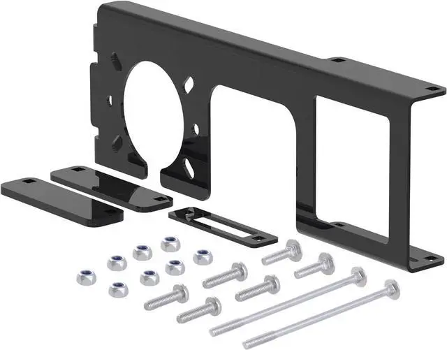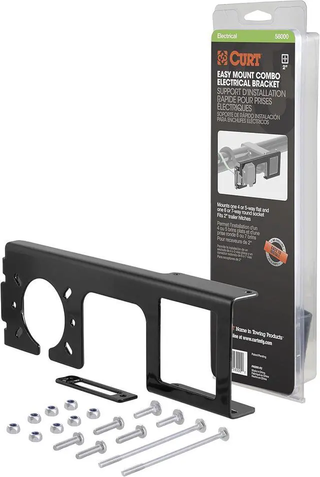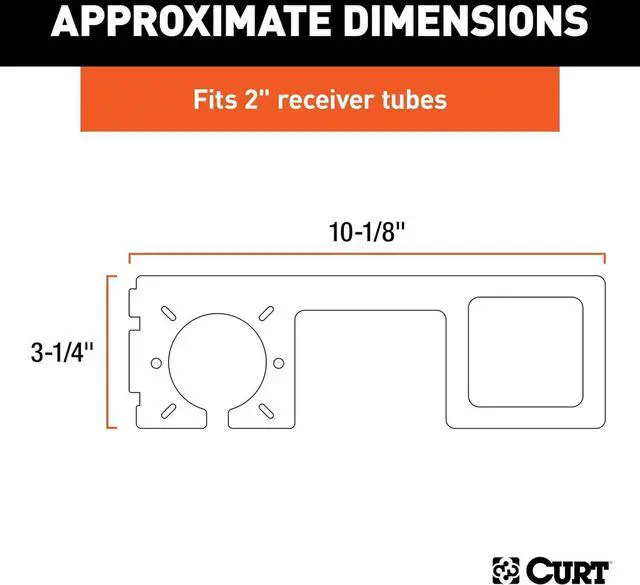 Allows connectors to be hitch-mounted on virtually any 2 x 2 trailer hitch receiver tube with no drilling or clamping required (US patent #9 016 707)Accepts 4-way or 5-way flat and 6-way or 7-way round connector socketsTwo threaded bolts ensure a fast secure hitch mountNotched design allows convenient access to pin & clipSteel body will not break like competitive plastic products and it is protected by a durable powder coat finish
