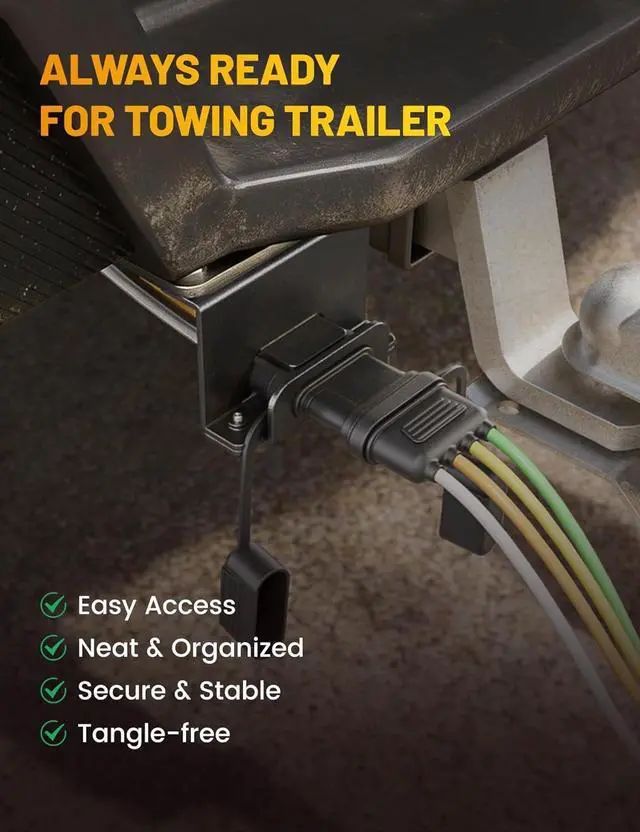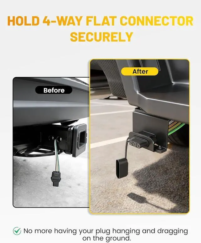 Mounting: Engineered with a precise design and reinforced structure 2 screws fasten the 2-piece brackets together hold your 4-pin trailer plug firmly in place at the rear of the vehicle. No more loose connections plug damage or rattling during drivingEasy to