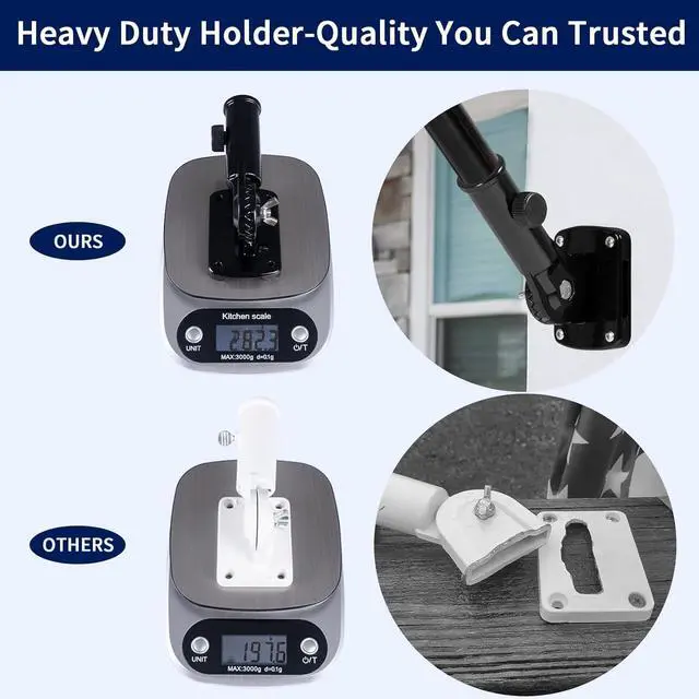 Mounting with metal straps: Pass the straps through the holder and tie it to the post (This package doesn't contain the straps)Enhanced AccessoriesExtended and thickened 304 stainless steel screws and wall anchors provide a more effective grip. Features a heavy duty base which can withstand the weight of the flagpole without breaking. Designed for the flagpole holder outside it helps to display your flag as you wish even in strong winds and other weather. Multiple ApplicationsAvailable in white black silver and brown. NQ flagpole holder is suitable for house porches front yard balcony railings roof or even your truck or boat. It is convenient to hang welcome flags holiday flags such as Thanksgiving and Christmas flags or state flags and other flags and banners.