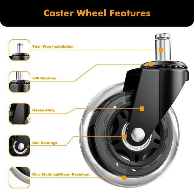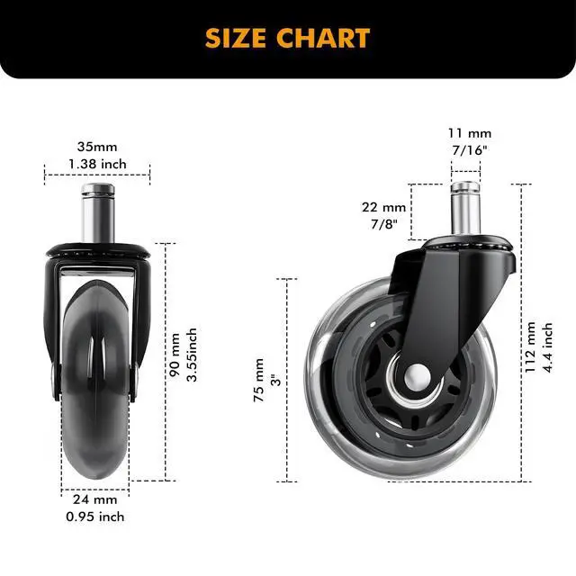 Experience the ultimate in smooth rolling with CLOATFET 3 Inch Office Chair Wheels. These precision-engineered casters feature a universal 7/16" stem for compatibility with most office chairs.