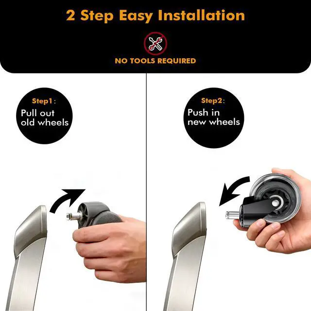 To remove your old casters, simply grip firmly and pull straight out with steady pressure. Installation is just as intuitive—align the new caster's stem with the socket and press down firmly until it locks securely into place. No tools, no complexity, just instant results.