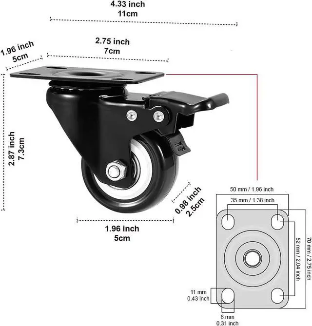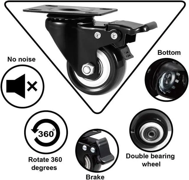 Double brake: Our top plate swivel caster wheels have double brake, it can brake the rotation direction of the bottom plate and the direction of the wheel forward, which is easy to operate.