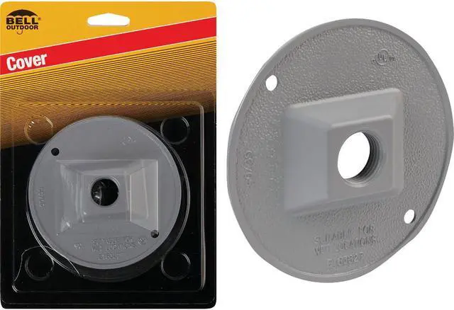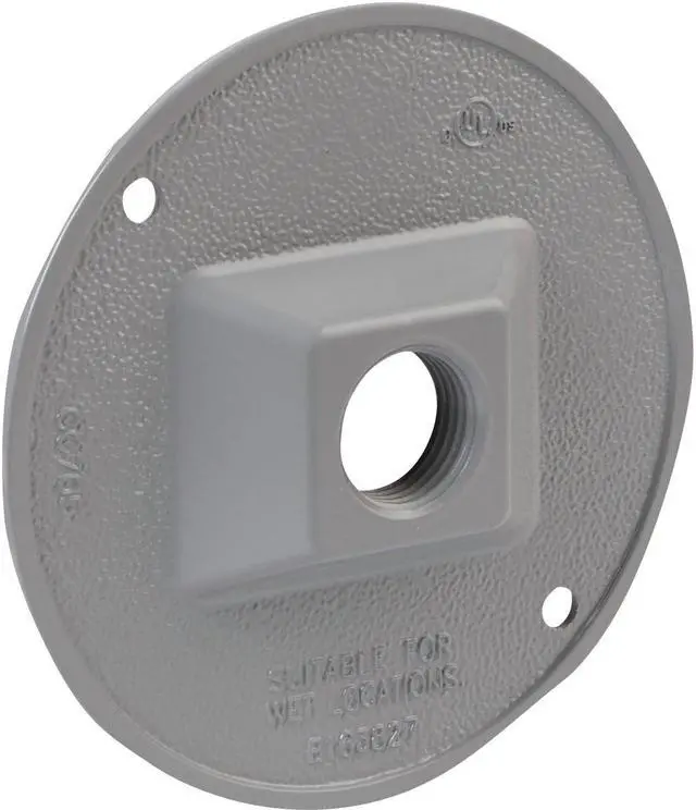 Round cluster cover for use with lampholders. (1) 1/2-inch threaded outlet. Made of corrosion resistant zinc, finished with a protective color coating. For wet locations, gaskets and screws included. Carded. Gray. UL (Underwriter's Laboratories) listed.