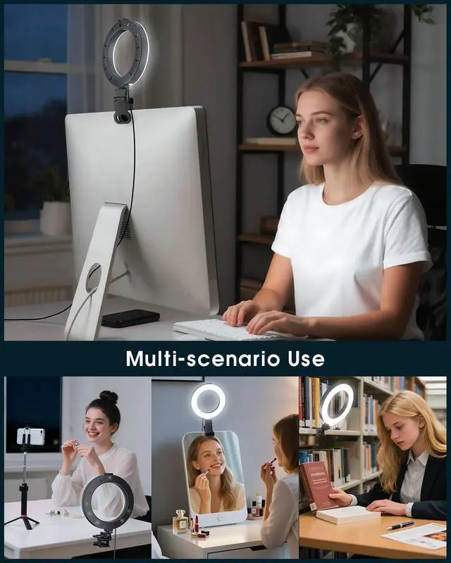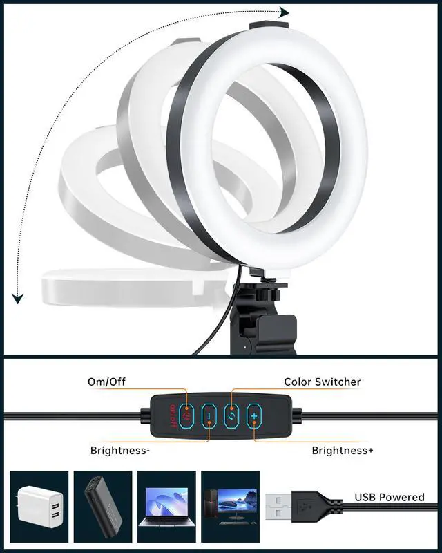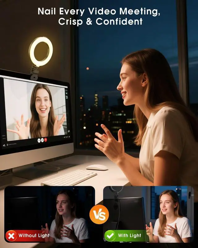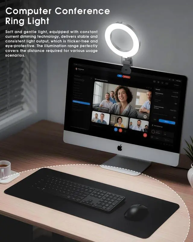 Ring Light for Computer Video Conference - Webcam Light for Monitor Clip On Remote Working Distance Learning Zoom Call Self Broadcasting and Live Streaming Influencer Light Laptop Video Conferencing
