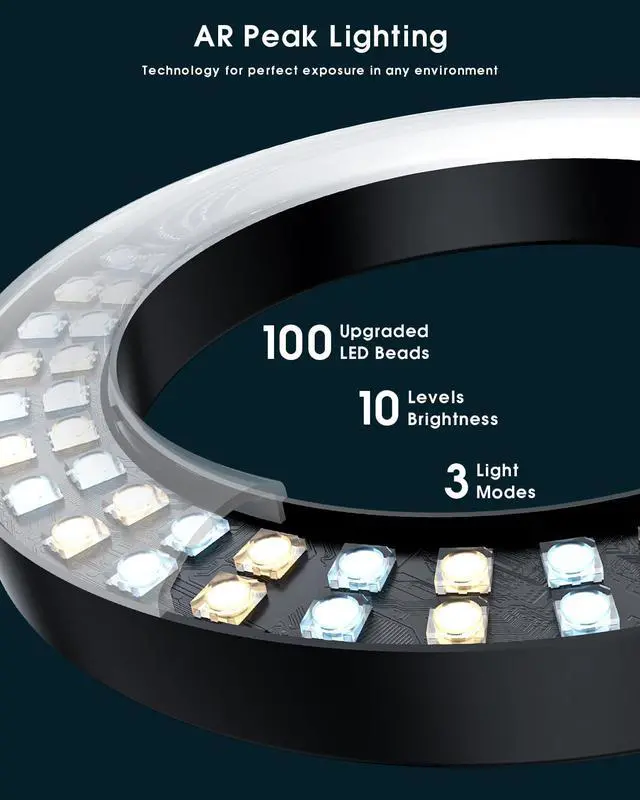 Excellent lighting: This LED desk lamp has a high color rendering index (CRI) of over 95, ensuring accurate color reproduction and making your photos and videos look vivid and realistic. Whether you are a professional social media creator, a beginner on YouTube, or just looking to improve your video calls and selfies, this circular light provides excellent lighting performance.