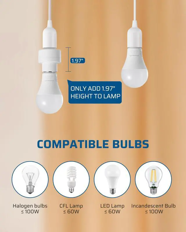 The wireless lamp socket will add 1.97" length or height to the lamp. Please measure your light fixture before use.
