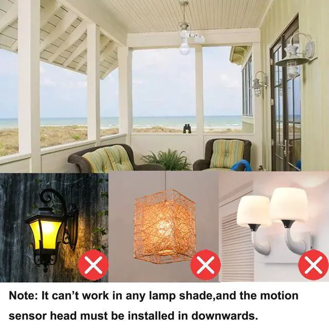 2) It can't work in any lamp shade, So Please do not fix the socket into an enclosed lampshade,or the glass shade will block the sensor.
