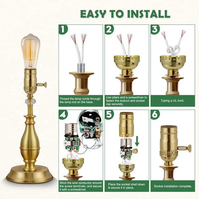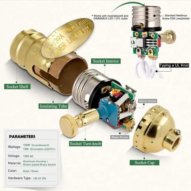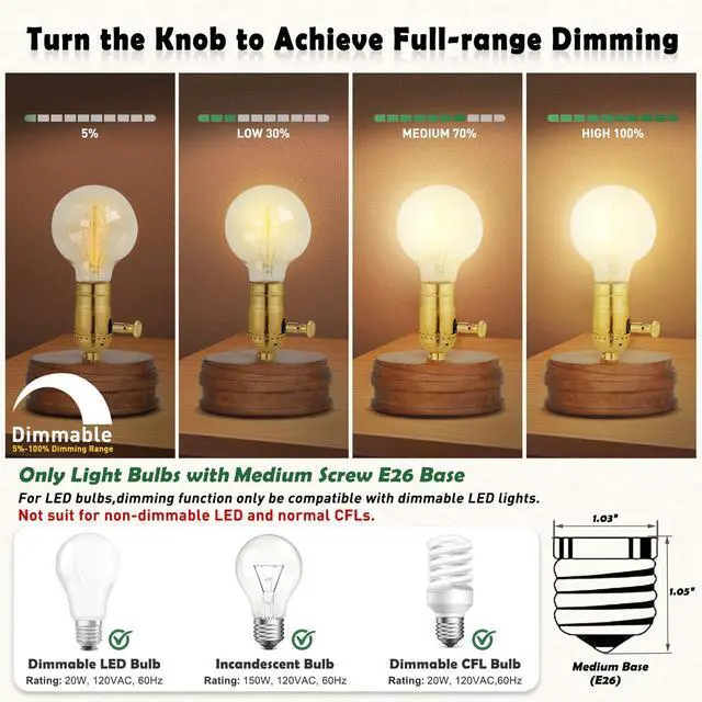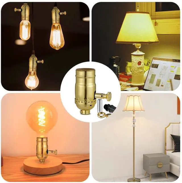 Dimmable Lamp Switch Replacement, Vintage E26 Light Bulb Socket with Dimming Switch Knob for Table Floor Light, UL Listed