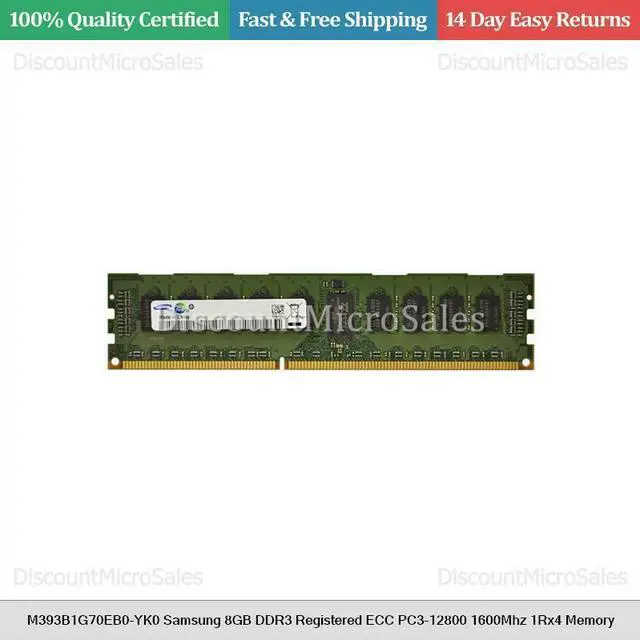M393B1G70EB0-YK0 Samsung 8GB DDR3 Registered ECC PC3-12800 1600Mhz 1Rx4 Memory