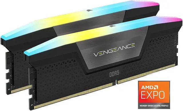 CORSAIR Vengeance RGB 64GB (2 x 32GB) 288-Pin PC RAM DDR5 6000 (PC5 48000) XMP 3.0 AMD EXPO Desktop Memory Model CMH64GX5M2B6000Z40
