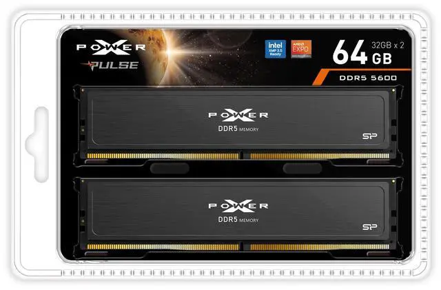 Silicon Power XPOWER Pulse 64GB DDR5 5600MHz CL40 1.25V Dual Kit (2x 32GB) Black Model SP064GXLWU560FDJ