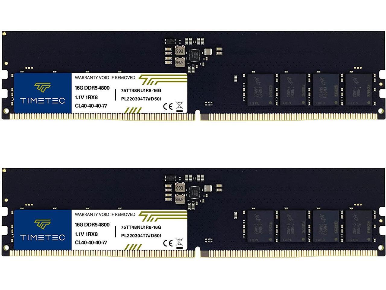 Timetec 32GB KIT(2x16GB) DDR5 4800MHz PC5-38400 Unbuffered Non-ECC 1.1V CL40 1Rx8 Single Rank 288 Pin UDIMM Desktop Memory RAM Module Upgrade (32GB KIT(2x16GB))