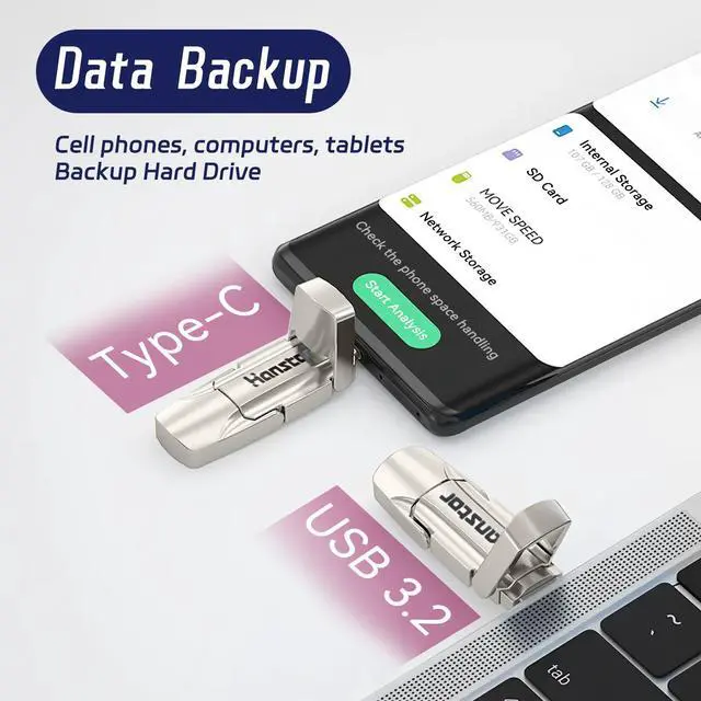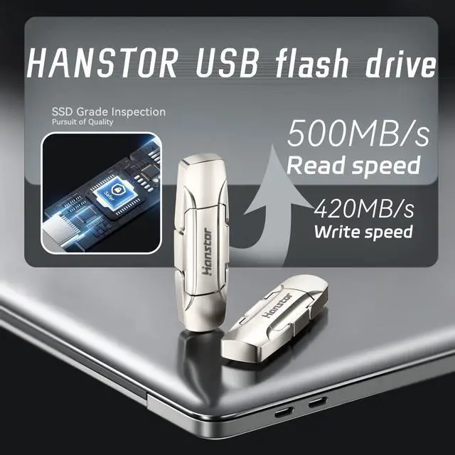 Hanstor solid-state USB flash drive series use solid-state storage solution, faster than ordinary USB flash drive transfer, can quickly complete the transfer of ultra-high-definition large image and 4K video, with USB 3.2, Type-C high-speed interface, easy, efficient to complete the transfer between cross-device.