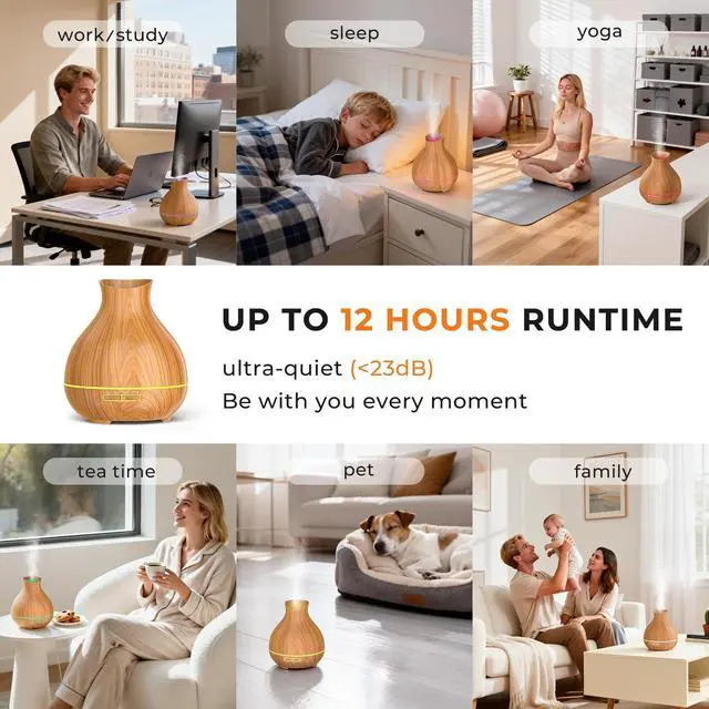 This diffuser has a low decibel level, and the ultra-quiet fan can effectively reduce noise, so it won't disturb you at night.