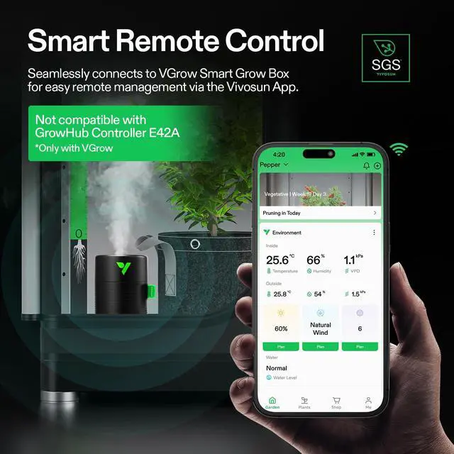 | Smart Remote Control | Smart Remote Control | Smart Control, SGS Compatible | All-In-One Ecosystem | Smart, Sleep Mode | Automated & Quiet Irrigation | Two Mist Modes |
