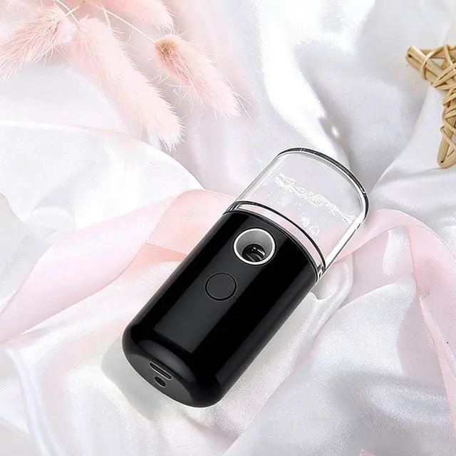 SOEWIOU black cute ballshaped nano mist facial sprayer produces fine and gentle mist to instantly hydrate and refresh skin. Compact and portable for easy carrying, USB rechargeable, suitable for daily skin care, travel, office and outdoor use. Effectively moisturizes face, relieves dryness and keeps skin hydrated all day.