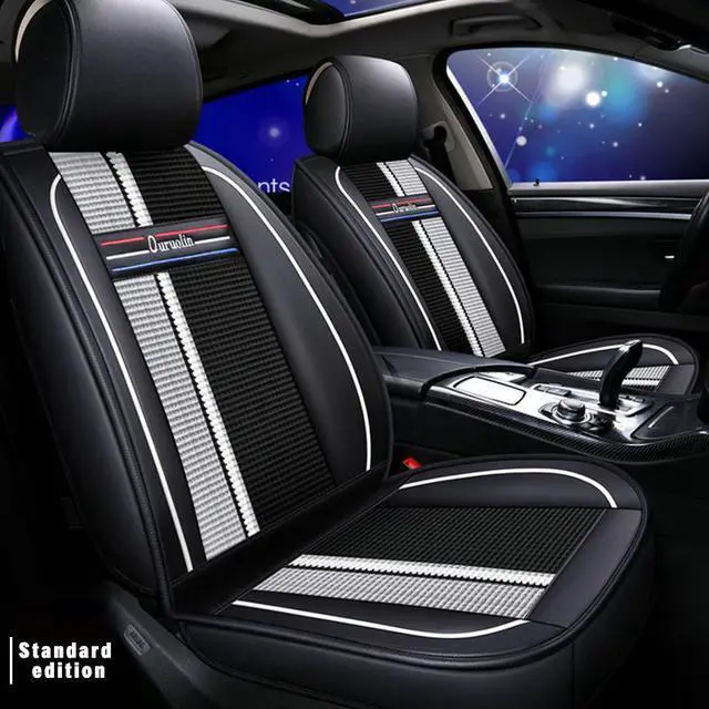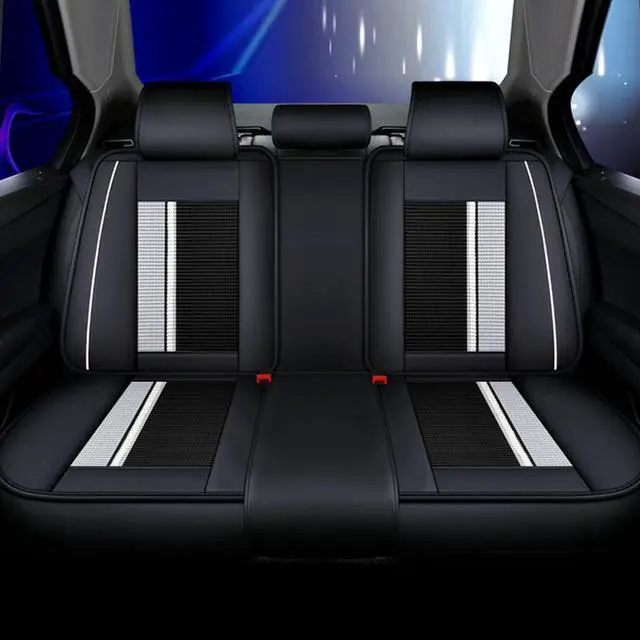 Car Seat Cover, 5 Front And Rear Seats, All-weather Car Seat Cover, PU Leather Car Seat Cushion, Black White