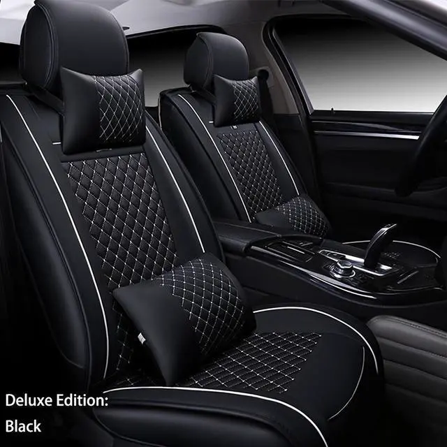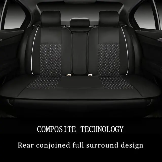 Comfortable Luxury Car Seat Covers, 5 Front And Rear Seats, All-weather Car Seat Covers, PU Leather Car Seats With Lumbar Support And Headrests, Black White