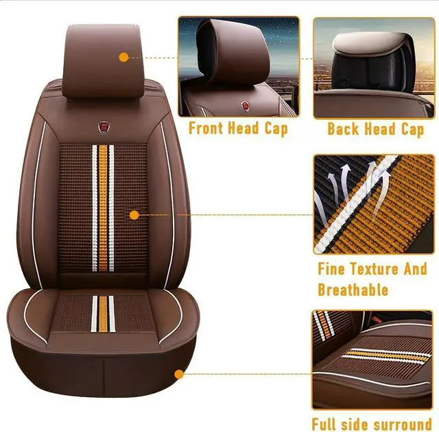 Comfortable Car Seat Cover, 5 Front And Rear Seats, All-weather Car Seat Cover, PU Leather Car Cushion,Coffee