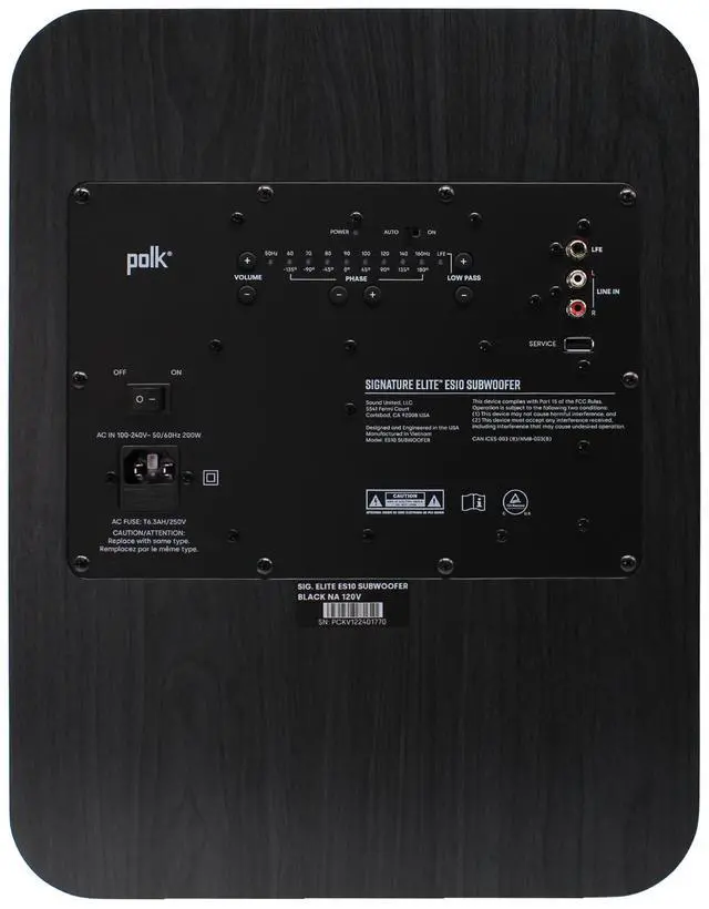 Whether you're immersed in an action-packed movie or feeling the beat of a high-energy playlist, the ES10 delivers sound you can feel. With Polks Time-Smart Phase Control, the ES10 aligns perfectly with your main speakers, creating a seamless and natural transition between frequencies. It also includes a 4th order low-pass filter for tighter integration, and stereo RCA and LFE inputs for easy compatibility with most AV receivers. Its power-saving mode reduces energy consumption when not in use, and the detachable grille lets you customize your setup's aesthetic. Compact and high-performing, the ES10 is the ultimate subwoofer for completing your Signature Elite system.