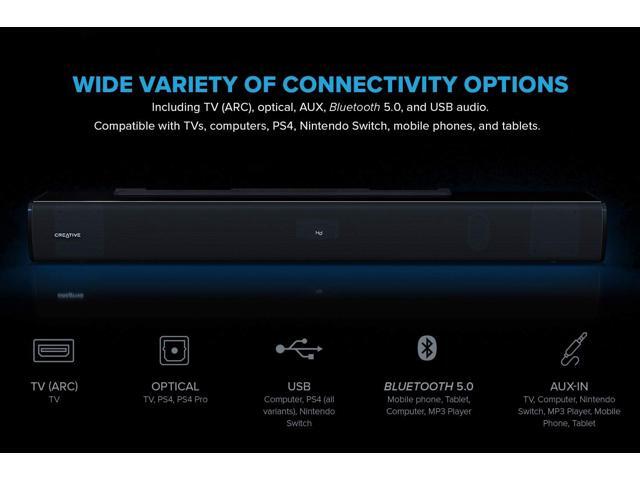 Creative Labs Stage V2 2.1 Soundbar Speakers with Subwoofer, Clear Dialog and Surround, Powered by Sound Blaster, BLK