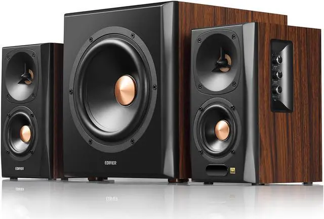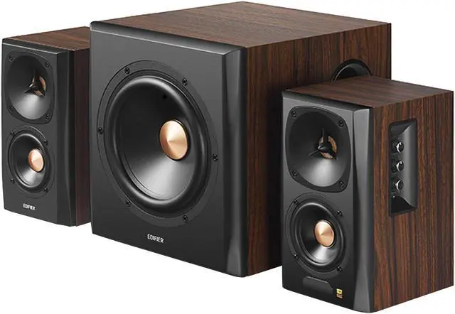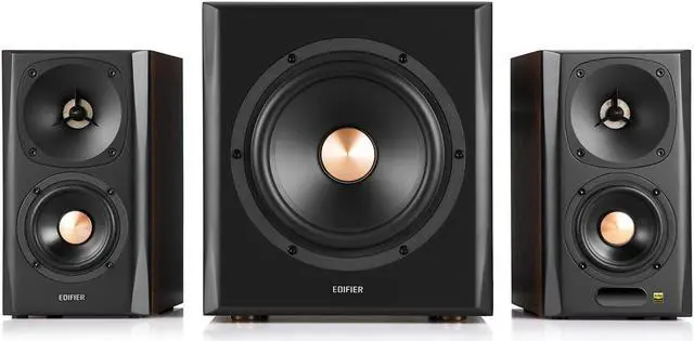 Don't settle for 2.1 speaker systems that rely on dinky little satellite speakers. Our S360DB uses real bookshelf quality speakers to complement the system's powerful subwoofer. Enjoy a true home theatre experience with an 8" woofer unit that pumps out rich, room-shaking bass, and planar diaphragm tweeters that offer clear highs to immerse you in your favorite songs and movies. A dark wood finish rounds out the package by offering a stylish, classic look, while its MDF enclosure prevents cabinet resonance from affecting the clarity of the audio. Experience true home audio immersion today with the S360DB.