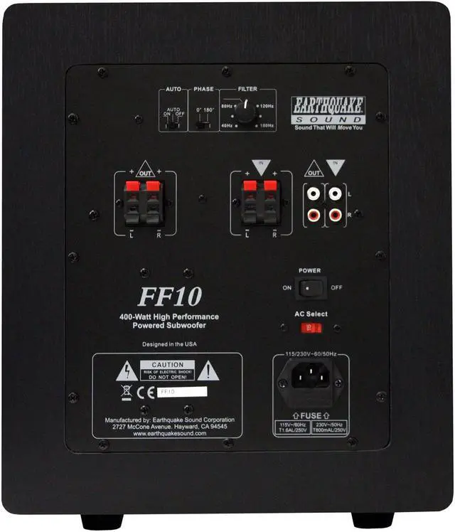 Earthquake Sound FF10 10 inch 400 Watts Class A/B Subwoofer Power Amplifier (Each)Earthquake's FF subwoofer system was designed to offer consumer budget and volume optimized subwoofer system solutions.