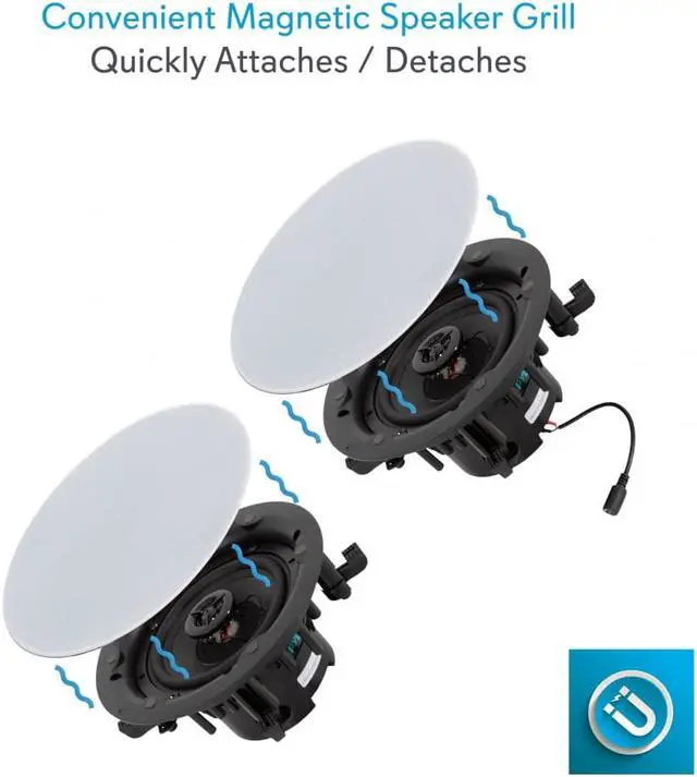 Great for custom applications, the Pyle Dual 5.25-Inch 240-Watt In-Wall/In-Ceiling Bluetooth Speaker Kit is easy to install and convenient to use.