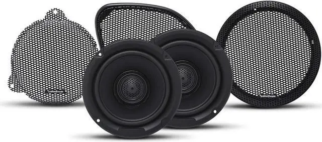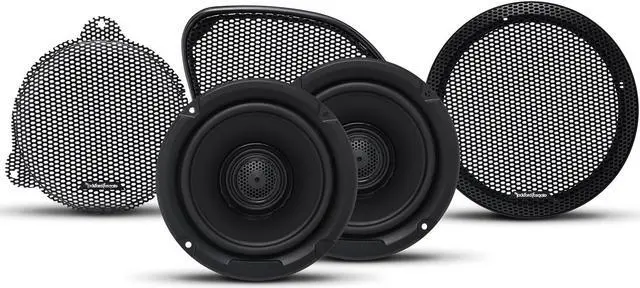 Listen to music on the road while riding your motorcycle with the Rockford Fosgate TMS65 Power Harley Davidson 6.5-Inch Full Range Motorcycle Speakers. You get 2 speakers with fairing and Tour-Pak grills with purchase.