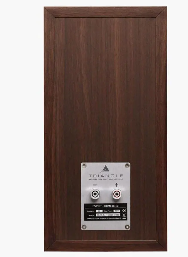 The woofer benefits from a unique combination of textile material and fiberglass, improving membrane rigidity and controlling resonance for a cleaner sound in the lower midrange and higher bass frequencies. To complement the high-quality drivers, the Esprit Comete Ez incorporates a crossover network with premium components, including copper coils and metalized polypropylene capacitors. The internal signal path is maintained with Triangle's own OFC cable, ensuring durability and consistent signal quality over time. The brushed aluminum terminal, exclusive to the ESPRIT Ez series, offers both functional and aesthetic benefits. It not only provides a secure connection for various cable types but also contributes to the speaker's overall elegant look while preventing vibrations and ensuring a tight seal for the cabinet.