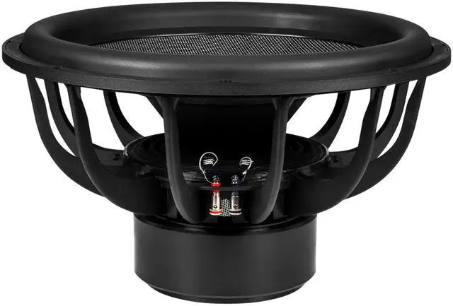 With the UM18-22 Ultimax 18' driver, Dayton Audio has taken everything about the respected Dayton Audio Ultimax subwoofers to the extreme! Providing over 2' of peak-to-peak excursion, the Ultimax 18 sweeps over six liters of air with each stroke! Truly not for the faint of heart! Like the rest of the Ultimax series, the UM18-22 plays it clean, low, fast, and LOUD. Designed to excel in either sealed or vented enclosures, it features an ultra-powerful triple stack of high-grade ferrite ceramic magnets for ultra-high force and exceptional control, plus dual aluminum shorting rings above and below the magnetic gap for minimized inductance, 'faster'-sounding bass response, and perfect magnetic symmetry. The voice coil diameter has been increased to 3 inches, for even more thermal dissipation area that allows the 18' model to withstand 1000 watts of punishing bass power continuously without thermal fatigue. Dual 2-ohm voice coils allow for stereo 2 ohm operation, or mono operation in 1 ohm or 4 ohm configurations, for true design flexibility. The huge 18' Nomex honeycomb composite curved cone features woven fiberglass outer skins for the ultimate in rigidity and resistance to damage, while the 'tall-boy' rubber surround with integral gasket supports extreme stroke with linearity and durability. Dual 8' spiders are mirror-imaged, to keep the 2' of excursion completely linear and provide cancellation of distortion due to compliance asymmetry, for ultra-low mechanical distortion even at the outer limits of travel. And it’s all held in perfect alignment by a rigid cast aluminum 12-spoke frame, for stability in any mounting position. Put your home’s construction to the test with the phenomenal bass output of this 18' beast! Car audio recommended alignments: • Sealed 3 cubic ft. (net internal, not including driver) for an f3 of 28 Hz with a Qtc of .8 • Vented 4 cubic ft. (net internal, not including driver or vent ) tuned to 22 Hz, with 2 flared vents 4' diameter by 32' long, for an f3 of 24 Hz Home theater/stereo recommended alignments • Sealed (home theater/music): 4 cubic ft. (net internal, not including driver) for an f3 of 27 Hz, f10 of 18 Hz with a Qtc of 0.9 • Sealed (music): 7 cubic ft. (net internal, not including driver) for an f3 of 26 Hz, f10 of 15.8 Hz with a Qtc of 0.76 • Vented (home theater): 8 cubic ft. (net internal, not including driver or vent) tuned to 20 Hz, with 3 flared vents 4' diameter by 28.5' long, for an f3 of 18 Hz • Vented (infra-sub): 12 cubic ft. (net internal, not including driver or vent) tuned to 15.5, with 3 flared vents 4' diameter by 32' long, for an f3 of 15 Hz • Infinite Baffle: Approved (reaction force cancellation recommended ) Note: All specifications are derived with voice coils wired in series.