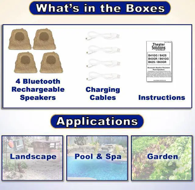 Theater Solutions by Goldwood B42S Fully Wireless Powered Bluetooth Rock 4 Speaker Set