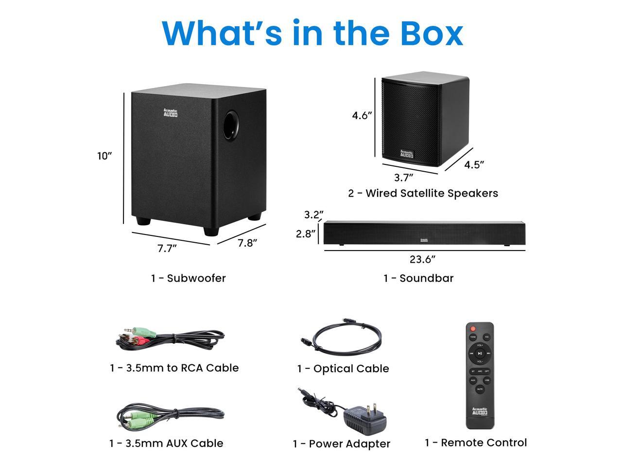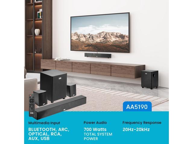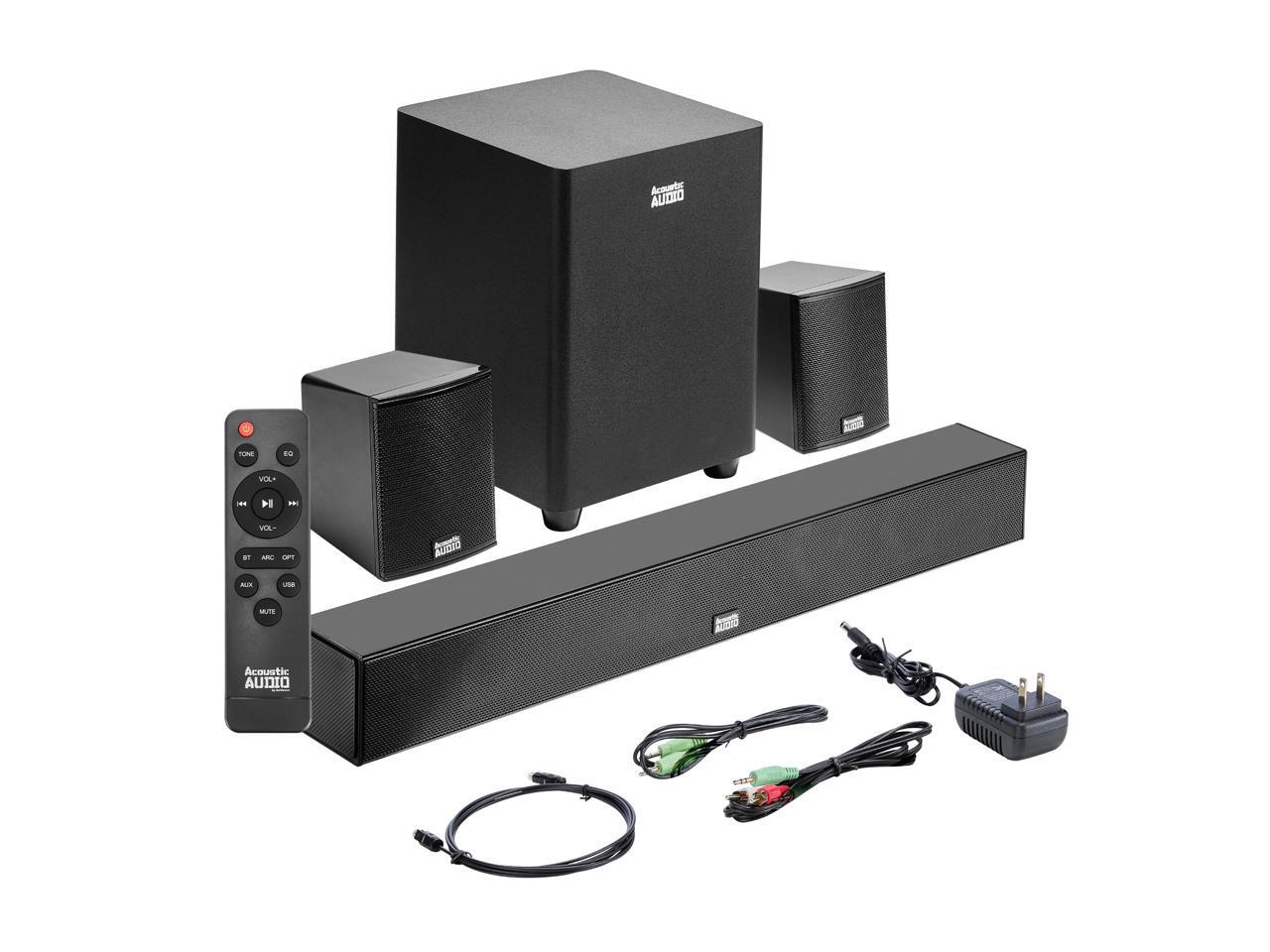 Acoustic Audio 5.1 Surround Sound Home Theater Sound Bar with Bluetooth, RCA, Optical, ARC, AUX, Wireless Subwoofer and Remote Control - AA5190 (Black)